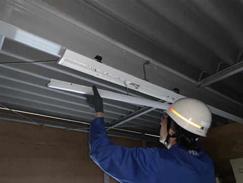 オフィス・工場、テナントで使用されている蛍光灯や水銀灯などを使った照明器具の撤去、消費電力の少ない直管形LED照明に付け替える工事のコンサルティングから設置工事までの工程の全般を請負って作業しています。